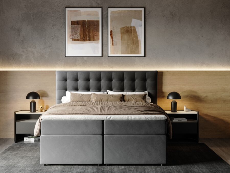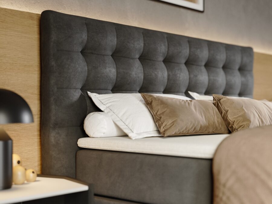 Svaki boxspring krevet je napravljen s mnogo pažnje na detaljima i preciznoj izvedbi. Njegova jezgra se sastoji od drvene konstrukcije, bonnell opruga i poliuretanske pjene koji daje dodatni sloj udobnosti.